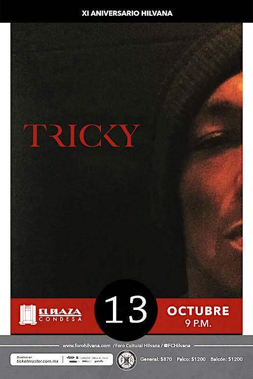 Alucinación total. Tricky se presentará mañana sábado 13 de octubre en el Plaza Condesa, dentro de las celebraciones por el aniversario número 11 del Foro Cultural Hilvana.