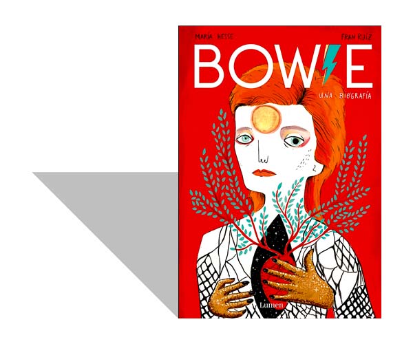 En el caso de David Bowie, fallecido en enero de 2016, hace un par de años apareció Bowie, de Simon Critchley, un peculiar recorrido filosófico-existencial por la vida del creador de Ziggy Stardust, y este año acaba de aparecer un curioso y encantador volumen llamado Bowie, una biografía (Lumen, 2019), con texto de Fran Ruiz e ilustraciones de María Hesse, ambos de origen español.