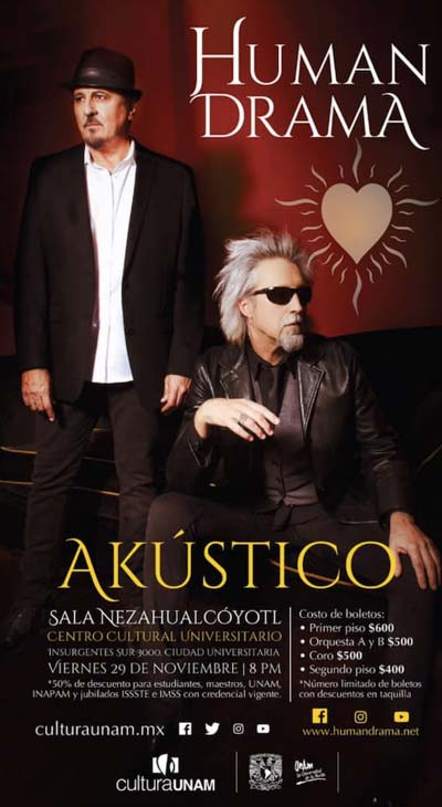 El inicio del Akústico de Human Drama en la Sala Nezahualcóyotl es promisorio. Indovina llega sin todas sus huestes, pero quién podrá negar que esa entidad, nacida hace 35 años en los pliegues de la oscuridad y con carta de adopción en la vena gótica, se encuentra bien representada por él y Balderas. Pronto nos daremos cuenta de que esta noche de “piano bar” será completada en algunos temas por la flauta de Claudia González y el violín de Gerardo Pozos, quienes hacen lo necesario cada vez que son requeridos.
