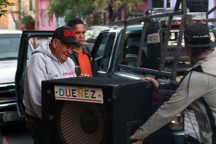 “Los amigos que vinieron de Europa nos contaron que en sus países está sonando fuerte la cumbia rebajada”, dice con mucha alegría. “También he podido ir a Los Angeles, California, a presentarme. No me imaginé que allá me quisieran”. Recientemente, su nieto Lalo se ha encargado de las redes sociales del sonidero, haciendo conexiones con gente que comienza a interesarse por la música colombiana y por todo lo que ha hecho don Gabriel. “En los bailes del Barrio Antiguo a los que voy a tocar se distingue gente de distintas clases sociales, conviviendo en un mismo lugar”, me dice. Una de las personas que lo ha ayudado es el Speedy, de los bares Café Iguana y Salón Morelos, quien ya conocía al Sonido Duéñez y su familia. Él lo motivó para que tocara en sitios donde nunca se había presentado. También el dueño del Nandas le abrió las puertas de su local.