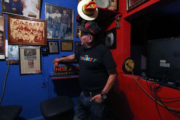 4. La explosión de la música colombiana, nos cuenta, se dio cuando los integrantes originales de Los Corraleros de Majagual se separaron y cada uno hizo su carrera por separado. “Todo lo de Colombia se fue para arriba aquí en la Independencia”, comenta con todo el conocimiento que tiene. “A partir de eso, distintos grupos colombianos empezaron a venir a Monterrey. Traían discos y uno, como sonidero, iba con ellos para surtirse de música”. El Sonido Duéñez se ganaba el cariño de la gente que descubría ritmos para bailar. Incluso, don Gabriel le mostraba música a Celso Piña para que la tocara.