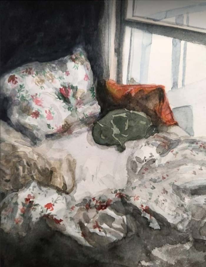 La artista intenta establecer una conexión entre el acto de recordar, la acción de pintar y dibujar y el proceso de creación, todo por medio de una mirada poética.