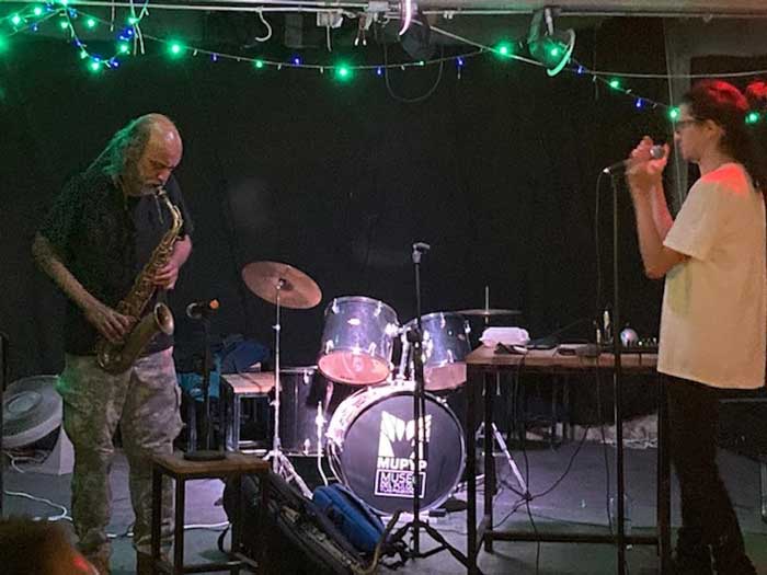 No me he repuesto del todo de la sorpresa cuando la dupla Germán Bringas (saxofones) y Rodrigo Ambriz (voz y efectos) toma por asalto el escenario. Y literalmente es por asalto, porque el primer sonido de Germán Bringas es un agudo grito, una nota que demanda atención y lo logra. Durante los cuarenta minutos siguientes, el dueto nos llevará por un accidentado terreno.