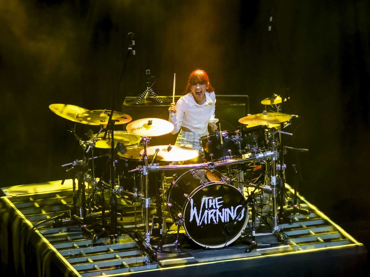 Los sólidos golpes de batería dieron cuenta de que Paulina Villarreal ya estaba instalada en el pedestal donde se encontraba rodeada de tambores y platillos (y su infaltable laptop) y en seguida surgió Alejandra, quien cruzó el escenario de poniente a oriente, mientras tocaba el conocido riff de bajo de “Z” y apenas se colocó en su acostumbrado lugar, a la izquierda de los espectadores, apareció la siempre híper activa Daniela, guitarra en ristre, para apoderarse del micrófono y saludar a quienes ya en ese momento más que su publico eran sus cómplices. La sonorización parecía perfecta, cosa que comprobamos todos segundos después, al entrar los sólidos golpes guitarrísticos de la front woman de The Warning. Una sola canción y ya todo estaba bajo control.