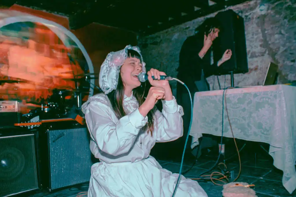 Sin embargo, la personalidad de Jacobo volvió a transformarse una vez más cuando se le unió en escena su hermana Elizabeth, en el dúo de synthpop que ambos conforman y al cual bautizaron como Valgur. El primero, ahora disfrazado con indumentarias eclesiásticas, se dispuso a manipular los artefactos electrónicos, en tanto la segunda, cubierta con un vestido blanco y largo similar al de una peregrina, se apropió del micrófono al que le dedicó suaves y brillantes cánticos. Los dos interpretaron melodías de su primer LP, Zapandú (2019), y otras tantas de su flamante álbum Armaggedon.