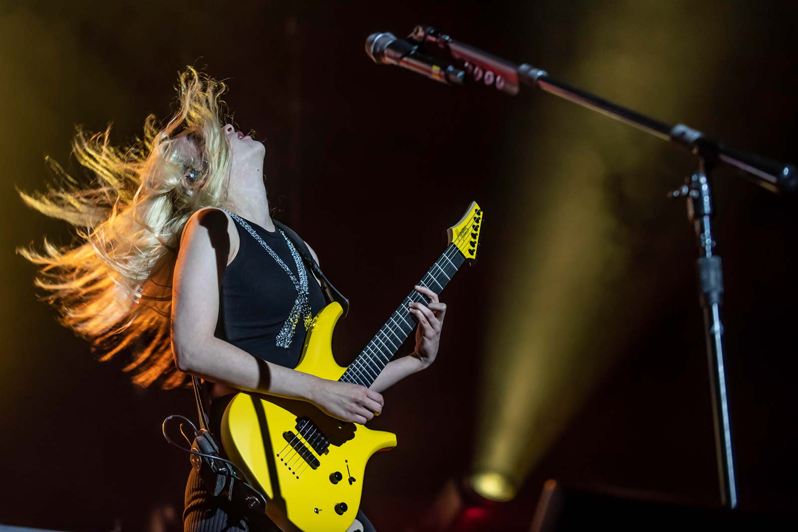 Eran las 20:40 cuando las luces se apagaron y los miles que estábamos de pie en la gigantesca parte baja del Pepsi Center, más los que se encontraban cómodamente sentados en la parte alta y en los palcos VIP, escuchamos una introducción instrumental grabada que anunciaba la tormenta por venir. La exclamación de la gente fue impresionante y lo fue aún más cuando el inconfundible riff de bajo de “Disciple” resonó aún más fuerte que los gritos de los presentes. En seguida se sumaron la batería y la guitarra, más las voces de las tres integrantes del grupo y aquello fue desde el inicio una jubilosa celebración. Sí, el sonido era brutal, incluso ensordecedor, pero también era diáfano, con cada instrumento perfectamente diferenciado, con las voces tan claras que era posible entender las palabras que pronunciaban.