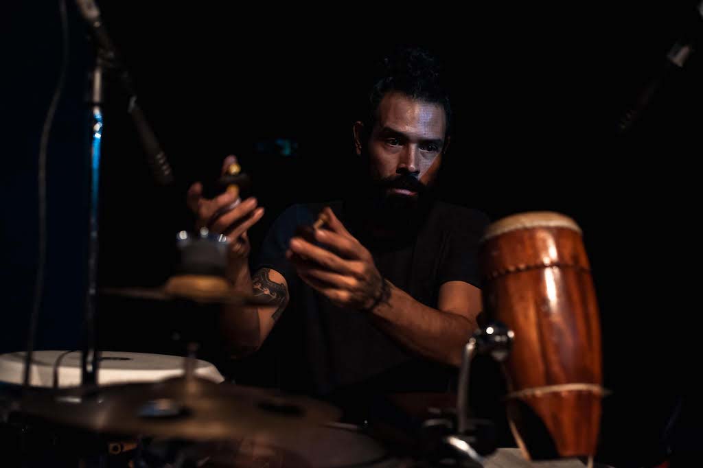 Poesía (Guadalupe Galván) y música abren la tarde, pero en la dinámica de la sesión nunca habrá cortes (a veces se dan breves pausas) y los músicos entrarán y saldrán constantemente del escenario, propiciando diferentes alineaciones, así que desde el inicio comienza a tejerse una especie de banda sonora citadina (los sampleos de vendedores y ambientes de Ciudad de México los dispara Last Jerónimo) que entra en calor lentamente y despliega olas funky sicodélicas cuando parafrasean “Spill the Wine” de War.