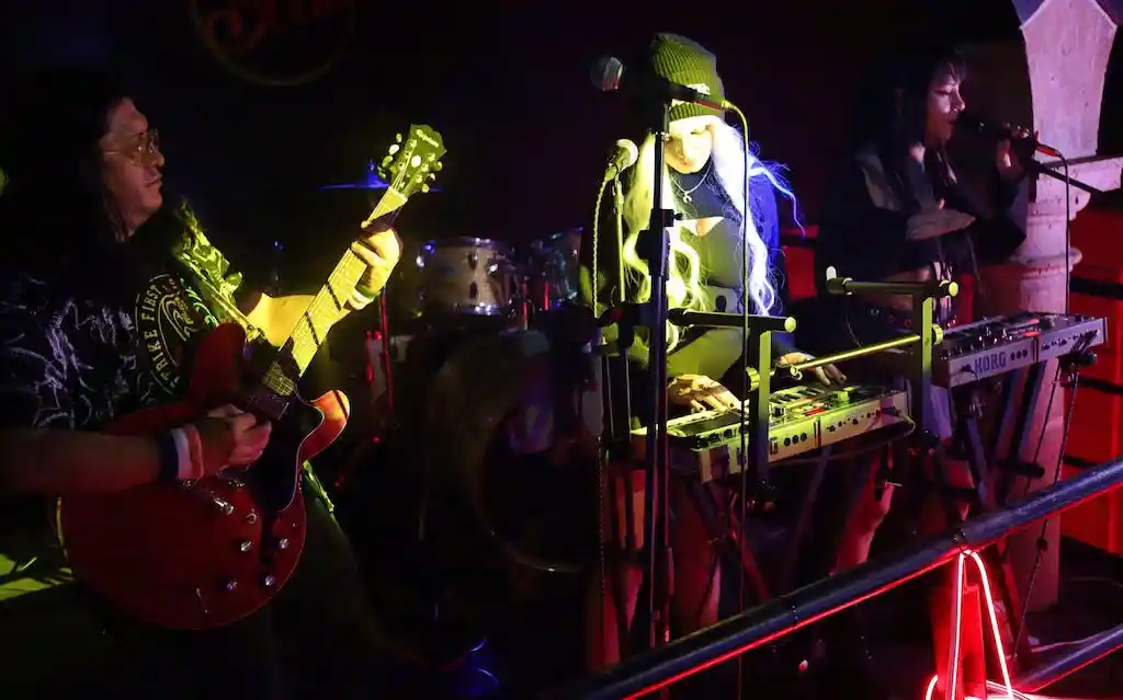 No obstante, y según mi criterio estrictamente roquero, lo sustancial ocurrió cuando Odisea Nebulosa subió al escenario y arrancó su participación con el estreno de un set list nutrido por melodías de reciente cuño como “Desde entonces”, “Hello Stranger” o “Ex One”, las cuales reflejaron el nuevo encuadre creativo antes referido por Estévez. Esas piezas exudaron un sonido alejado de su primigenio pop –que era más contagioso– y exploraron matices sutilmente inorgánicos, aunque sin perder el énfasis en la interacción de las melodiosas voces de Mendoza y Stars. En contraposición, el terceto readaptó antiguas canciones propias de Deer Murray y Estévez and the Wet People, como “Glass Flags”, “Love Is a Mistake” y “Amor en negro”.